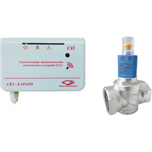 Система контроля загазованности "КАРБОН-2" (СО) Ду20 предназначена для информирования пользователя о загазованности помещений угарным газом, закрытия трубопровода подачи газа с помощью электромагнитного клапана, выдачи сигналов на внешние устройства и получения сигналов с внешних устройств. Система контроля загазованности обеспечивает: • индикацию включенного состояния; • индикацию световыми и звуковыми сигналами информации об аварии (загазованности); • индикацию световыми и звуковыми сигналами информации о неисправности; • закрытие электромагнитного клапана при получении информации об аварии. Характеристики и параметры: Основные технические характеристики приведены в таблице Наименование параметра Значение 1 Напряжение питания от сети переменного тока частотой 50 Гц, В 220±10% 2 Время установления рабочего режима (время прогрева), с, не более 40 3 Время, требуемое для выдачи сигнала на внешние устройство, при срабатывании аварии, с, не более 1 4 Уровень звукового давления на расстоянии 1 метра от прибора, дБ, не более 85 Средняя наработка на отказ составляет не менее 44000 часов. Средний срок службы систем контроля загазованности при условии своевременной замены сенсоров, выработавших свой ресурс и соблюдении требований настоящего РЭ – не менее 10 лет. Конструкция корпусов системы контроля загазованности должна обеспечивать степень защиты в соответствии с условиями эксплуатации не хуже, чем IP20 по ГОСТ 14254. Класс защиты от поражения электрическим током – II по ГОСТ 12.2.007.0. Условия эксплуатации: • температура окружающей среды, °С ...……… от 0 до плюс 50; • относительная влажность воздуха при температуре 25 °С, % … от 20 до 80; • атмосферное давление, кПа ………………….…… от 86 до 108. Состав системы: Система контроля загазованности состоит: • сигнализатор загазованности по угарному газу (СО); • электромагнитный клапан КЗЭМГ-Ду20, управляемый сигнализатором, позволяющий перекрыть подачу газа на исполнительные устройства; • модуль индикации МИ-1, предназначенный для информирования пользователя об аварии и неисправности (по заказу); • модуль индикации МИ-2, предназначенный для информирования пользователя об аварии по природному, углекислому газам и неисправности (по заказу). Подключение устройств системы производится межблочными соединительными кабелями.